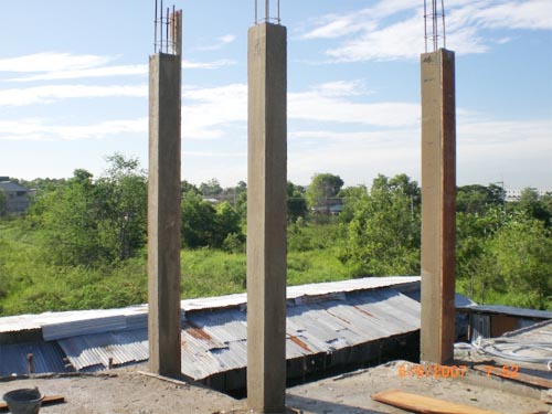 เสาแล้ว..ก่อนการเสียบเหล็กจะต้องทำความสะอาดรูเจาะให้เรียบร้อย