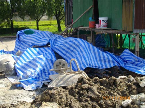 ผู้รับเหมาได้นำเหล็กเสริมคอนกรีต เข้ามาประมาณ 50 เปอร์เซ็นต์ ซึ่งเหล็ก