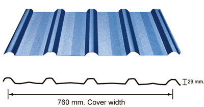 เมทัลชีททั่วไป สันลอนจะไม่สูงมาก และยึดติดกับแปโดยใช้การยิงสกรูยึด
