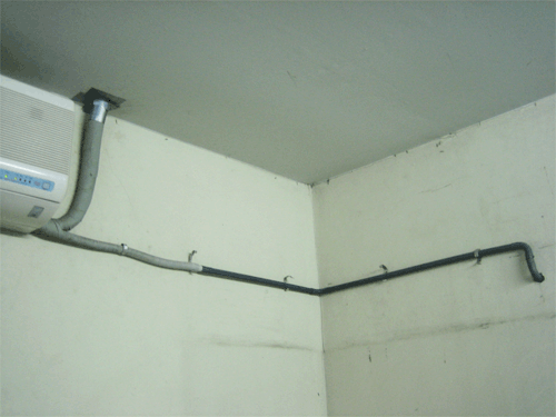 ส่วนรูปนี้แอร์ที่หอผมท่อน้ำยาวิ่งขึ้นบนฝ้าแต่ท่อน้ำทิ้ง (เล็กมาก) วิ่งขวาง ก่อน