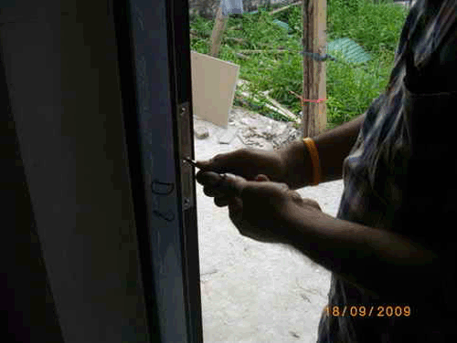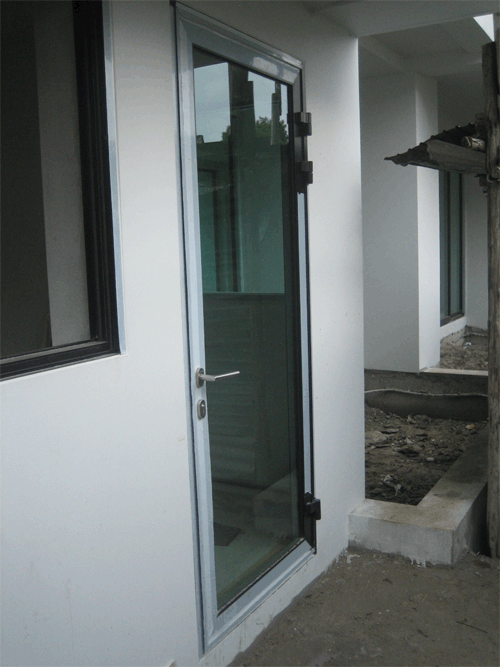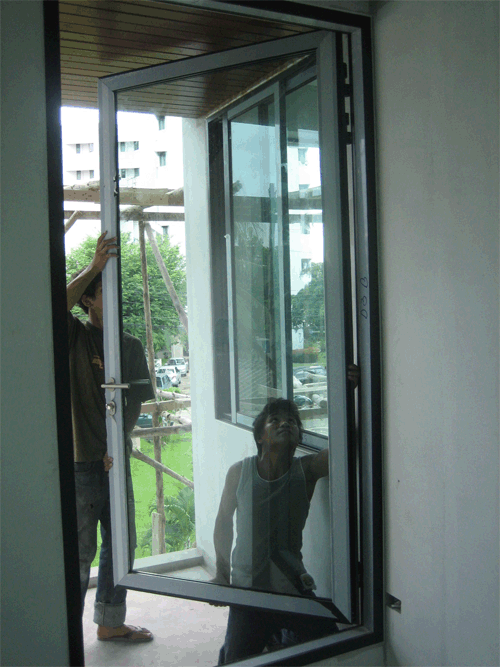 ตอนแรกมีช่างซึ่งผมเดาว่าน่าจะเป็นซับของบริษัท มาติดตั้งโครงประตูหน้าต่าง