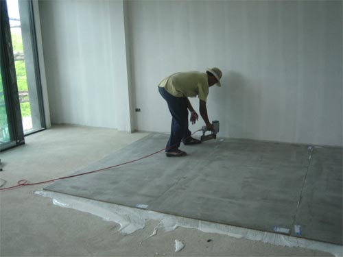 งานอลูฯก็กรูเข้ามาทำงานจนเสร็จ ช่างปูไม้ของผู้รับเหมาก็ เข้ามาสานงานต่อ