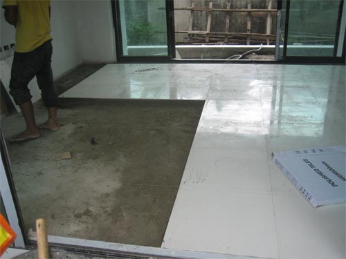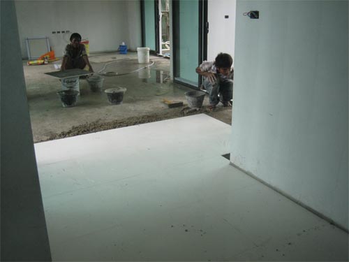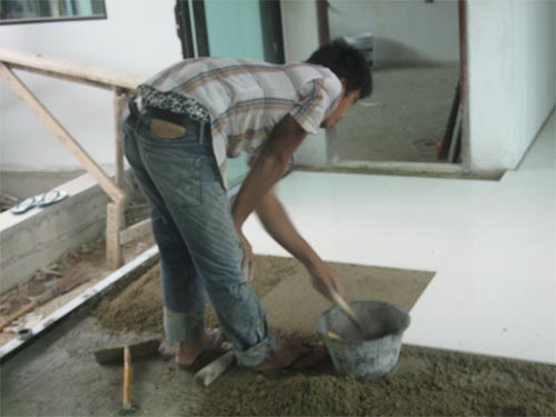 เริ่มจากใช้ปูนทรายปรับระดับพื้น
