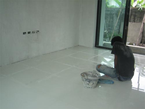ช่างเค้าก็จะผสมผงยาแนวกับน้ำ