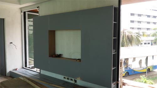 หลังจากที่ติดตั้งเฟอร์นิเจอร์บิลท์อินเรียบร้อย ช่างสีก็จะพ่นๆขัดๆอยู่นั่นน่ะ