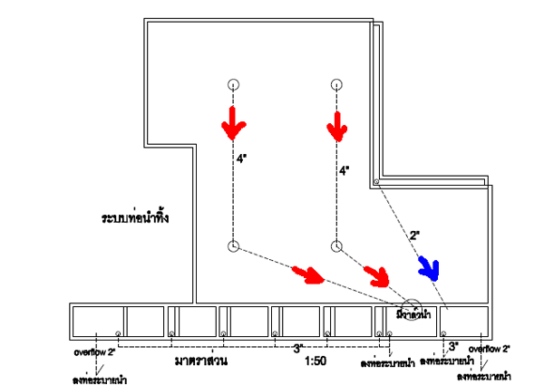 ระบบ Overflow แบบเดียวกับสระน้ำตามรีสอร์ท ลงสู่ร่องน้ำ แล้ววางท่อมายังห้องพัก