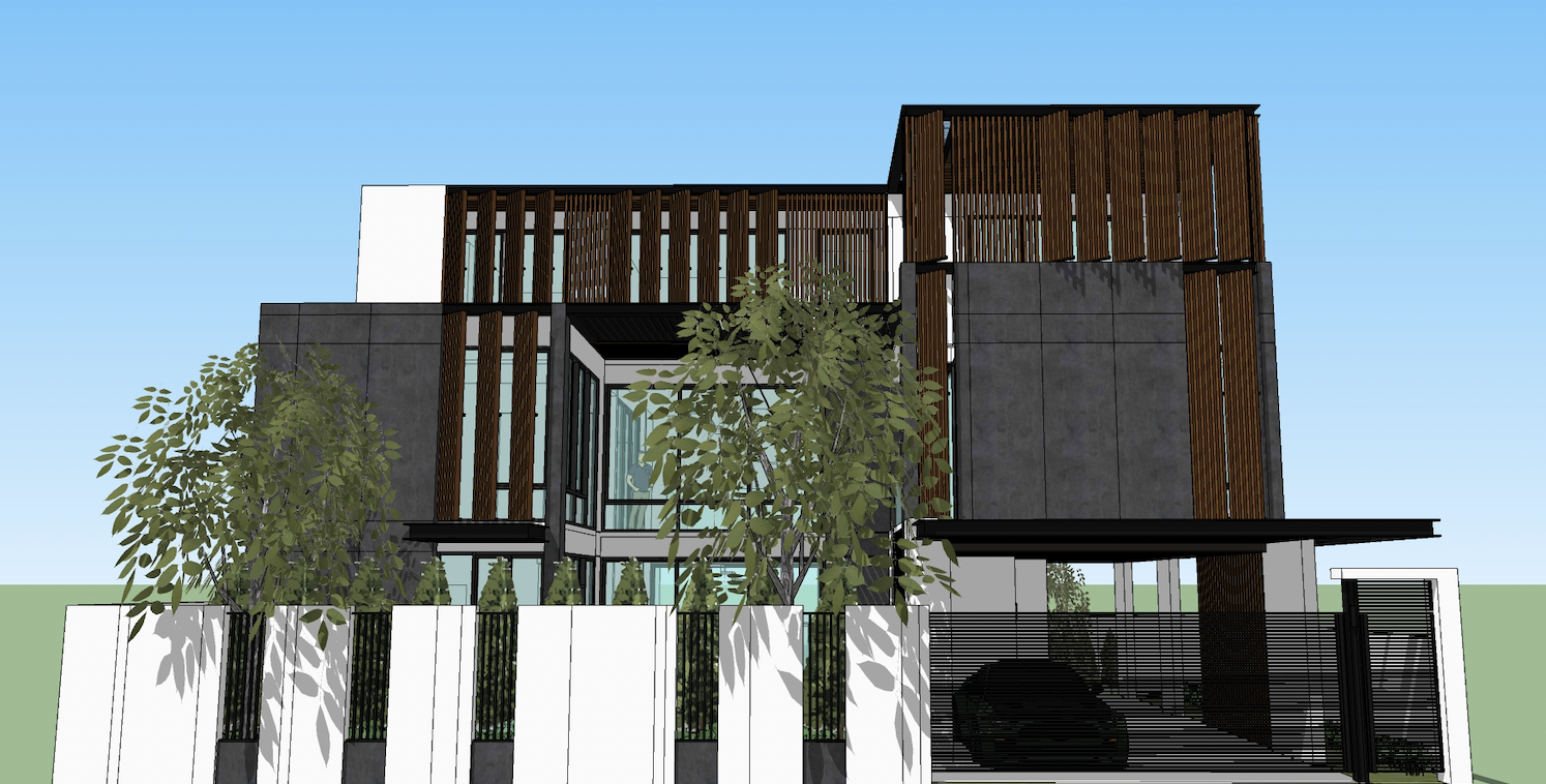 บ้านพักอาศัย 3 ชั้น สร้างที่ถนนราชพฤกษ์ ขนาด 584 ตร.ม. ประกอบไปด้วย 4 ห้องนอน 6 ห้องน้ำ 1 ห้องแม่บ้าน 1 ที่จอดรถ