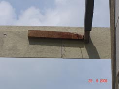 เหล็กจันทัน ของโครงหลังคา สั้นเกินไป ทำให้ต้องใช้ไม้ยัดจันทันยาวกว่าปรกติ
