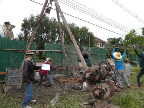 พอทำจริง ทีมผู้รับเหมาสร้างบ้านเอง ก็ส่งคนมาคุมงานคนทำเสาเข็มอีกด้วย