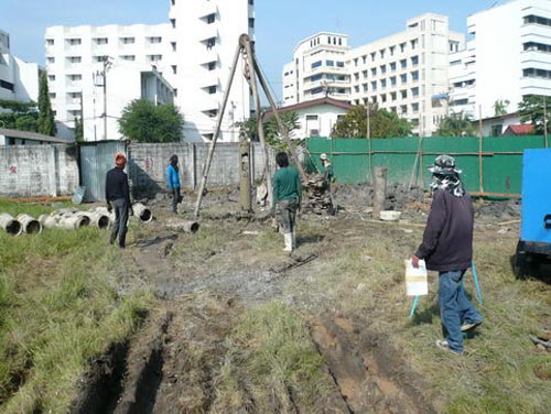 เค้าจะเจาะไปจนถึงชั้นดินทรายหรือดินดาน ซึ่งโดยเฉลี่ยแล้วในกรุงเทพ