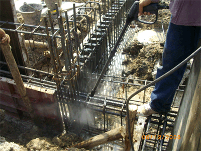ก่อนเข้าแบบข้างคาน ช่างได้ใช้ปืนฉีดน้ำ