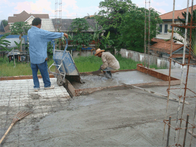 เทคอนกรีตพื้นทับลงไป