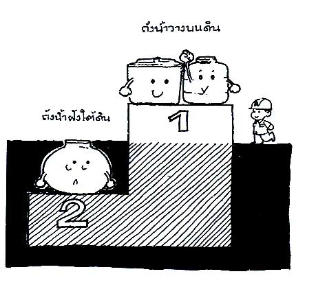 ตรงข้ามกับถังบนดิน...ที่ดูแลง่ายกว่า รั่วก็สังเกตเห็นง่ายกว่าแถมอาจจะได้