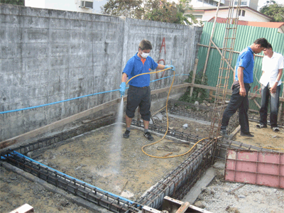 พื้นส่วนหล่อในที่นี้... ผู้รับเหมาจะเทคอนกรีตผสมน้ำยากันซึมพร้อมกับคาน