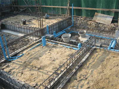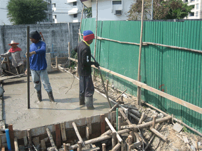 ต้องเทพื้นหล่อในที่ของชั้นล่างแล้ว และจำเป็นต้องวางผังท่อประปาไว้ก่อน