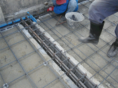 เหล็กเสริมจะสอดในตัวคาน พอเทปุ๊ป