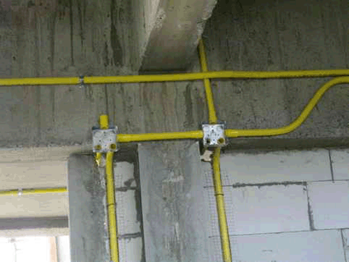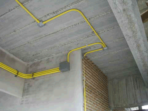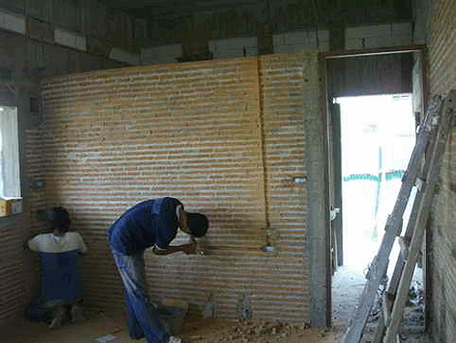 พอจะลงสู่บล็อกปลั๊กหรือสวิตซ์ เค้าก็จะสกัดผนังเป็นแนว เพื่อฝังท่อเหลืองไว้ใน