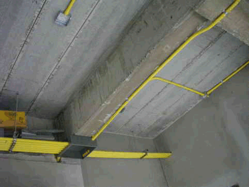 จากนั้นท่อ PVC เหลืองก็จะวิ่งออกจากตู้ ไปตามบล็อกต่างๆ ที่ฝังไว้ทั่วบ้าน