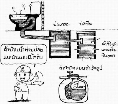 ส่วนใหญ่เค้าจะใช้บ่อเกรอะบ่อซึมอย่าง