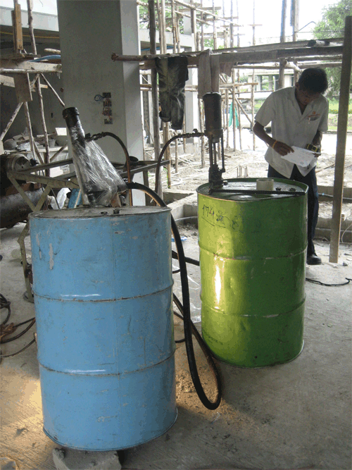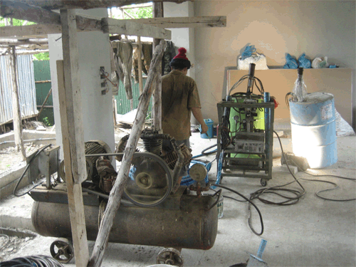 ยังกะโรงสีแน่ะ จากปั๊มก็จะมีสายท่อที่ลำเลียงน้ำยาและลมมายังหัวพ่น