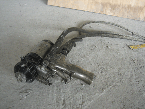 น้ำยา 2 ตัวที่ว่า ก็เลยต้องแยกทางกันเดินมายังหัวพ่น ที่จะพ่นลมพร้อมน้ำยา