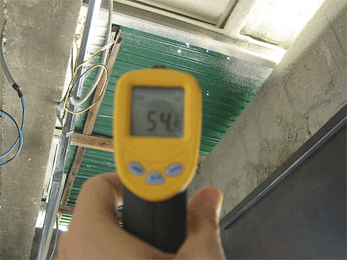 อิฐมวลเบา 2 ชั้น ฉาบปูน วัดได้ 30 องศา ขณะที่ด้านนอกวัดได้ประมาณ