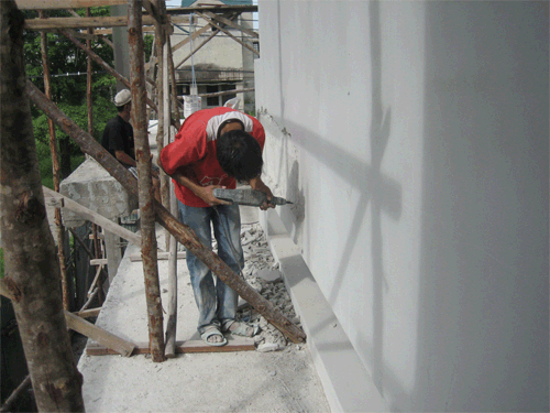 แสดงว่าฉาบไม่ติด ช่างก็จะสกัดปูนบริเวณนี้ออก แล้วฉาบใหม่