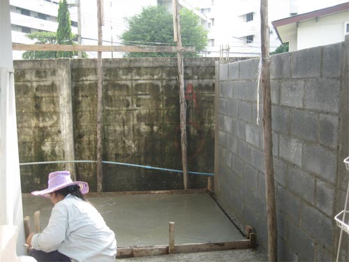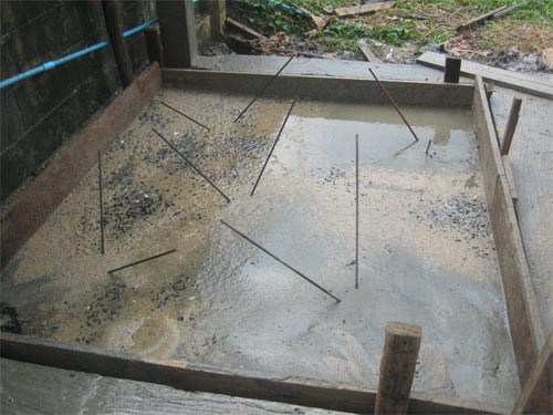 1500 ลิตร และโครงสร้างพื้นคอนกรีต ที่วางบนเสาเข็มสั้นอย่างที่เห็นนี้ครับ