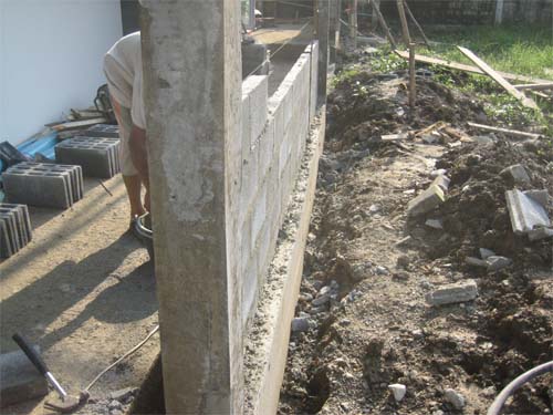 นั้น..ถ้าอยากให้ผนังกำแพงรั้วด้านในบ้านสวย เราจะต้องก่ออิฐบล็อกชิด