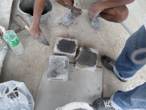 ฉาบด้วยซีเมนต์ขัดมันผสมสีให้เข้ม