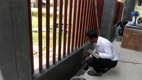 พอทำโครงเหล็กเสร็จ ช่างก็มาเก็บงานปูนที่เหลือ คราวนี้หัวหน้าช่างลงมา