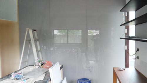 ในห้องครัวเป็นกระจกพ่นสีเทา