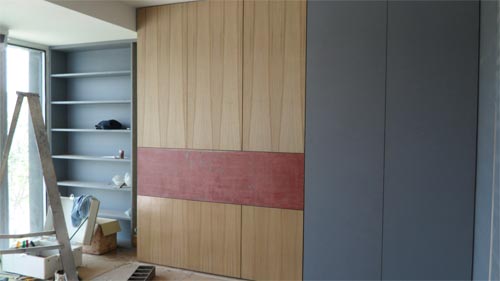 ตู้เสื้อผ้ากับโต๊ะทำงานในห้องนอนใหญ่