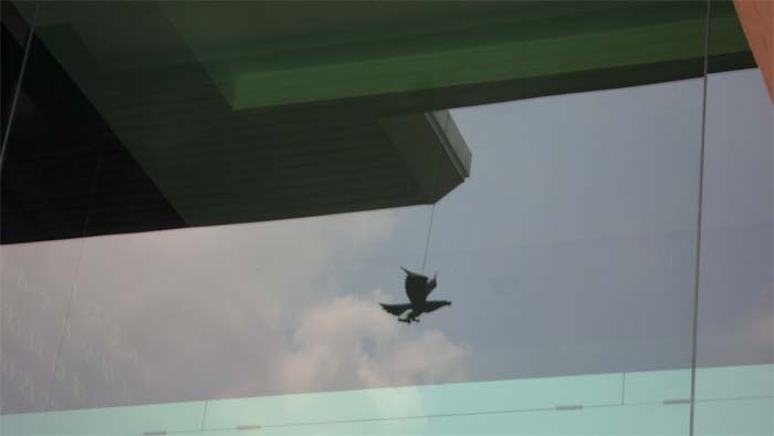 เพื่อขึ้นไปผูกเชือกห้อยนกเหยี่ยว ไว้กับยอดหลังคา ให้ตัวนกเหยี่ยวห้อย
