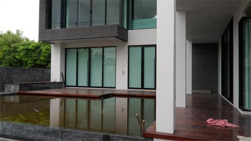 ในส่วนของฝาบ่อกรองที่เป็นทางเดินข้างบ่อปลา และ ทางเดินริมที่จอดรถ