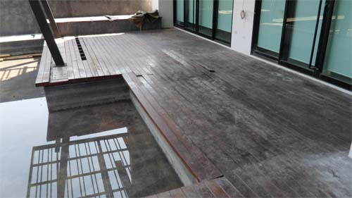 ผมหลังจากเกิดปัญหาไม้ปูพื้นภายนอกขยายตัวจนโก่งงอ ดันตัวออกมาเป็น