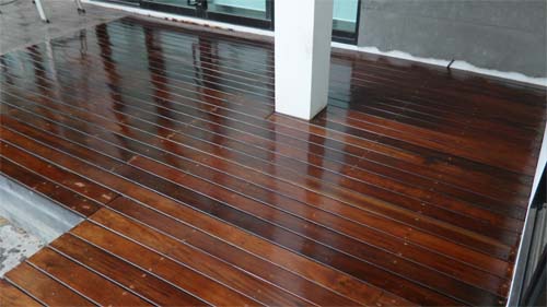 เสร็จซะที งานรื้อ ปู และทาสีพื้นไม้แดง