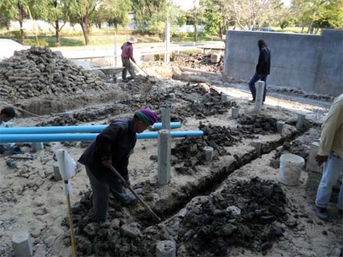 ที่บ่อกรองก็วางท่อเหมือนกัน