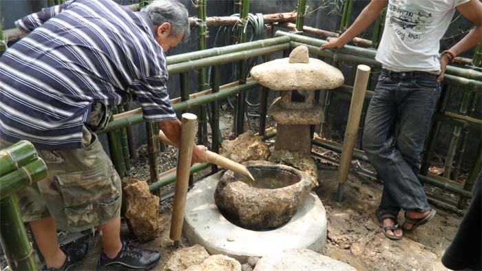 นั่งผ่อนคลายเวลามานั่งชงชาพูดคุยกัน สวนแบบนี้จะมีอ่างน้ำไว้ตักล้างมือ